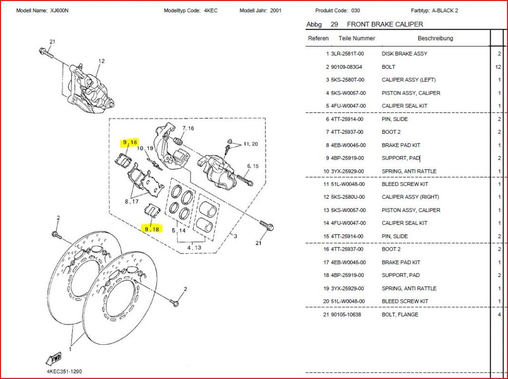 Přední brzdič XJ 600 od 98