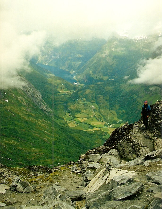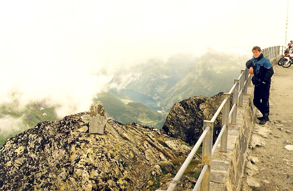 Ráno zase prší, ale nic naplat, my musíme jet. Za doprovodu mlhy, deště a chladného počasí navštěvujeme vyhlídku Dalsnibba ve výšce 1436 mn.m. I když zaplatíme za výjezdovou cestu 25 NOK, máme smůlu. Výhled na okolní ledovcové pohoří takřka nulový, vidět jde jen do údolí s fjordem. Zima je už taková, že nesundáváme ani rukavice. Padá rozhodnutí nepokračovat po Trollské cestě na sever do Andalsnes. Stahujeme se po patnáctce do Lillehammeru. Padá rozhodnutí nepokračovat po Trollské cestě na sever do Andalsnes. Stahujeme se po patnáctce do Lillehammeru. Počasí se umoudřuje, cesta je doprovázena překrásnými dravými horskými řekami zelené barvy. Zadnice nás sice strašně bolí , ale touha se ohřát nás žene přes Hamar (raritou sportovní hala ve tvaru vikingské lodi) na jih do Osla.