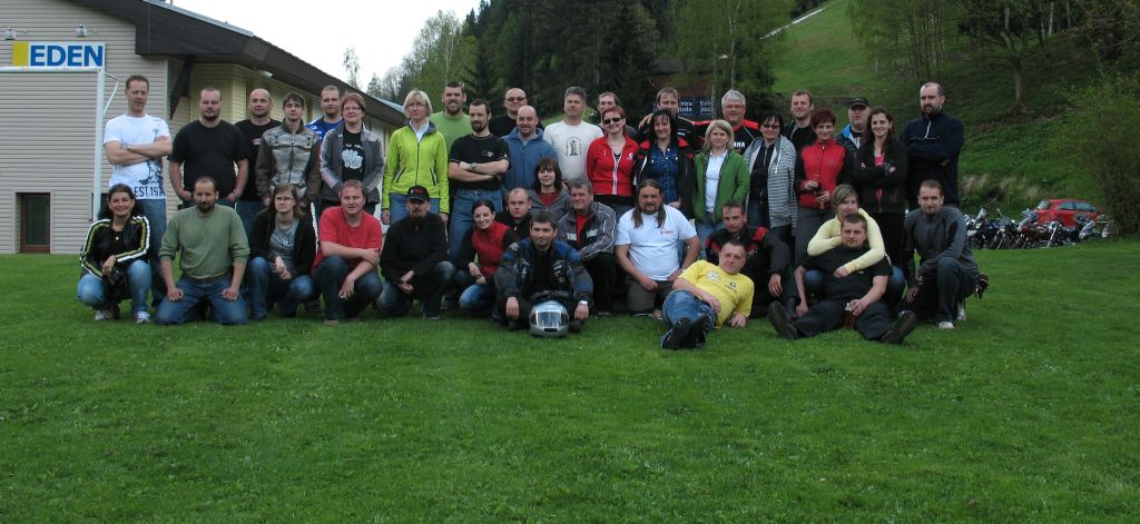 Po příjezdu a několika uvítacích panáčcích nás překvapil místní traktorista, v kterém někdo hned poznal likvidátora lesů(a posledních zásob ropy svým FJR:lol: ) Rixe, ale někomu to trvalo déle a to větší to byla sranda. Převlek byl opravdu dokonalý a při občasném zamumlání nějaké nesrozumitelné odpovědi si nejeden mohl myslet, že tenhle traktorista moc rozumu nepobral. Prohodil jsem s traktoristou pár slov a radši se šel "projít" po červené sjezdovce na Žalý a zpátky po černé dolů k ubytovně. To už ovšem dorazila většina účastníků a pípa se nazastavila...i když tedy v případě obsluhy roznáškou by těch sudů padlo víc.