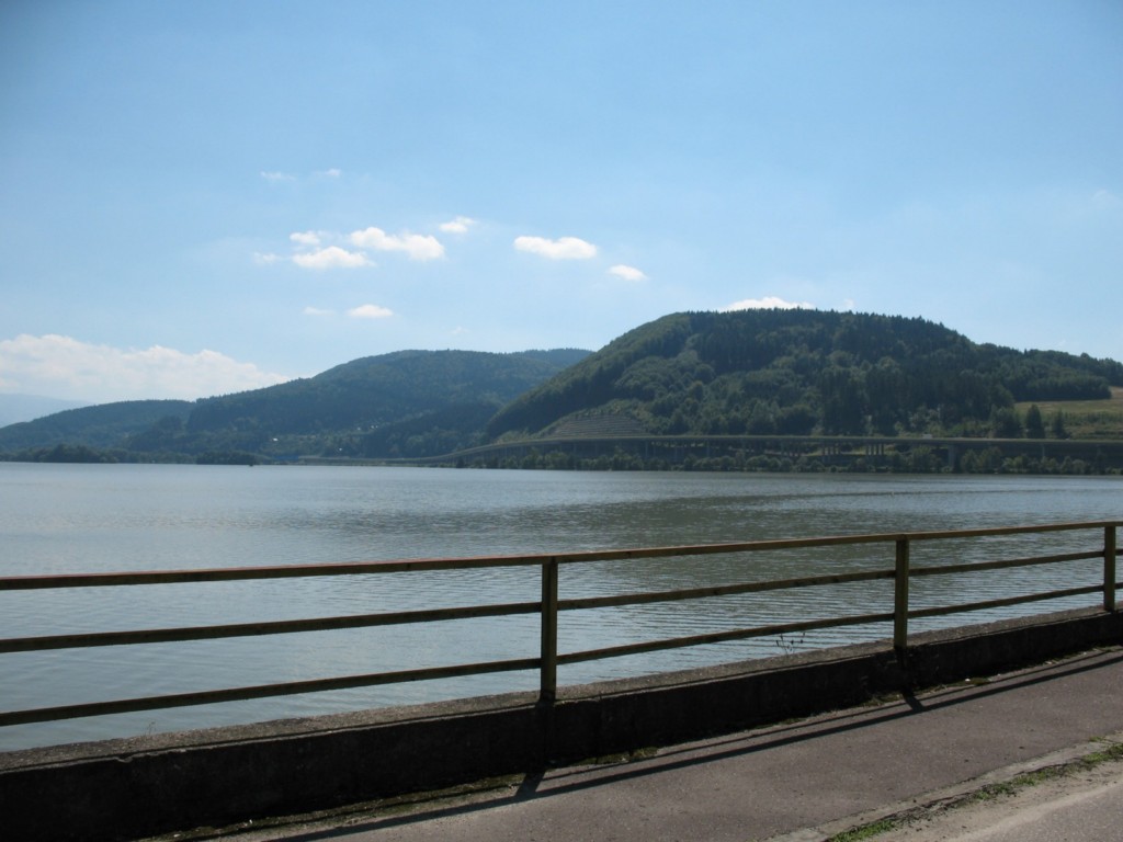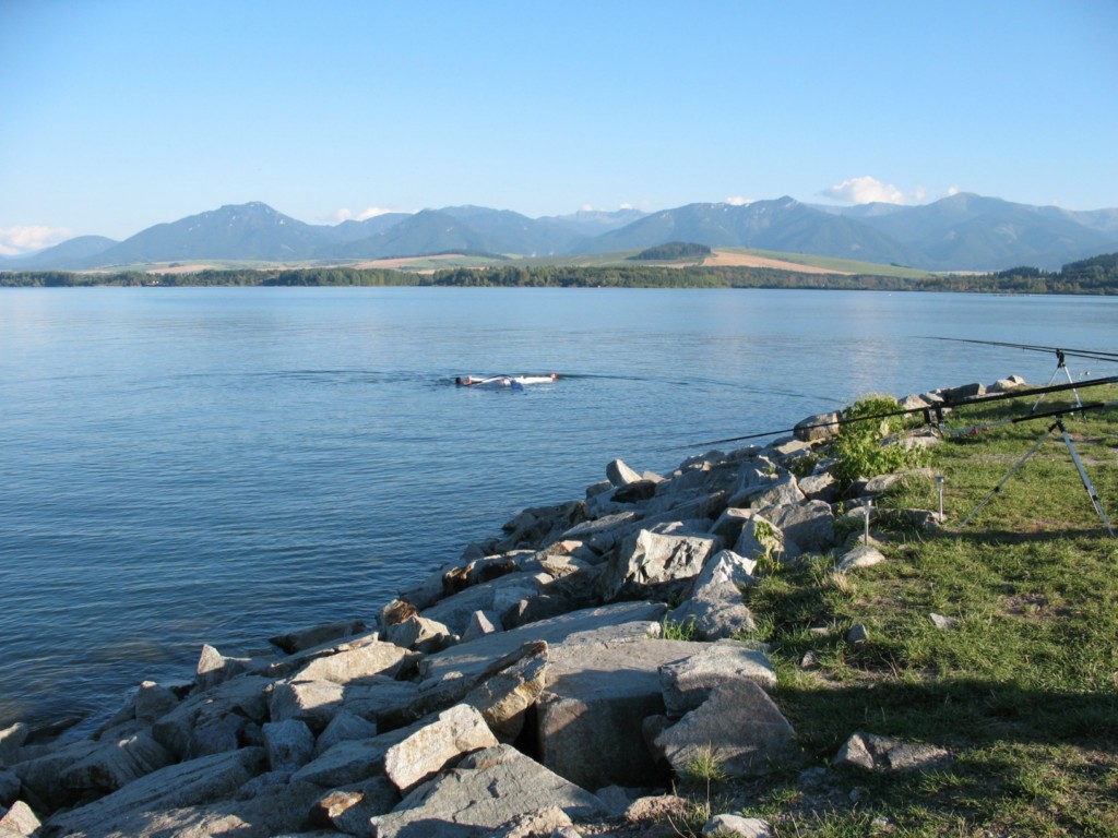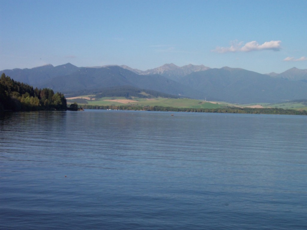 Další zastávkou byla přehrada Liptovská Mara. Rozlehlá vodní plocha, za ní výhled na vrcholky Tater, velmi příjemné prostředí...