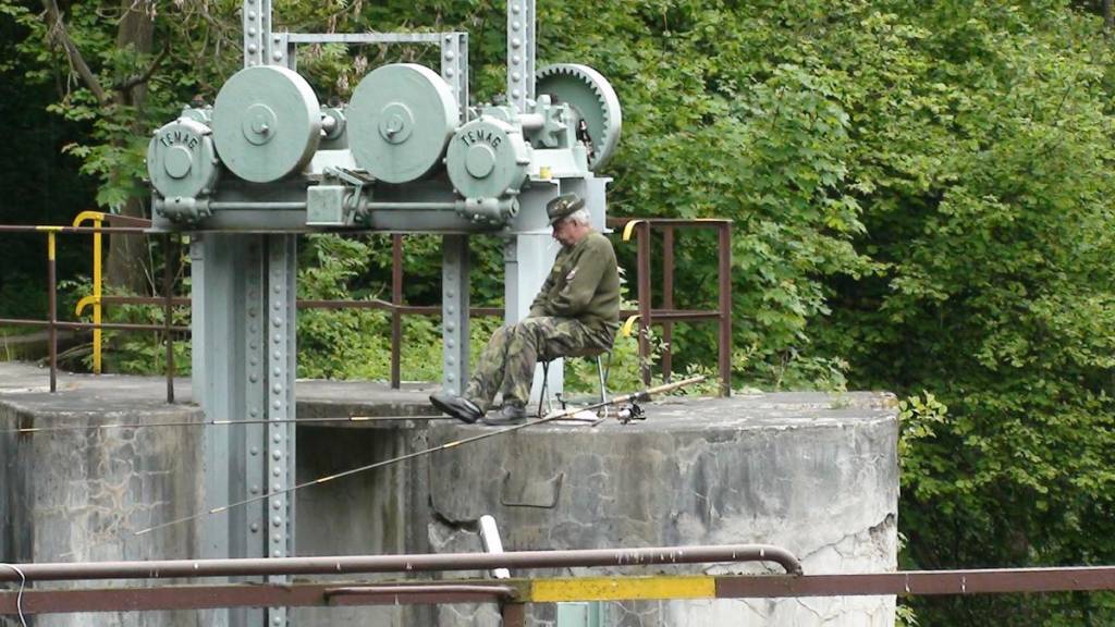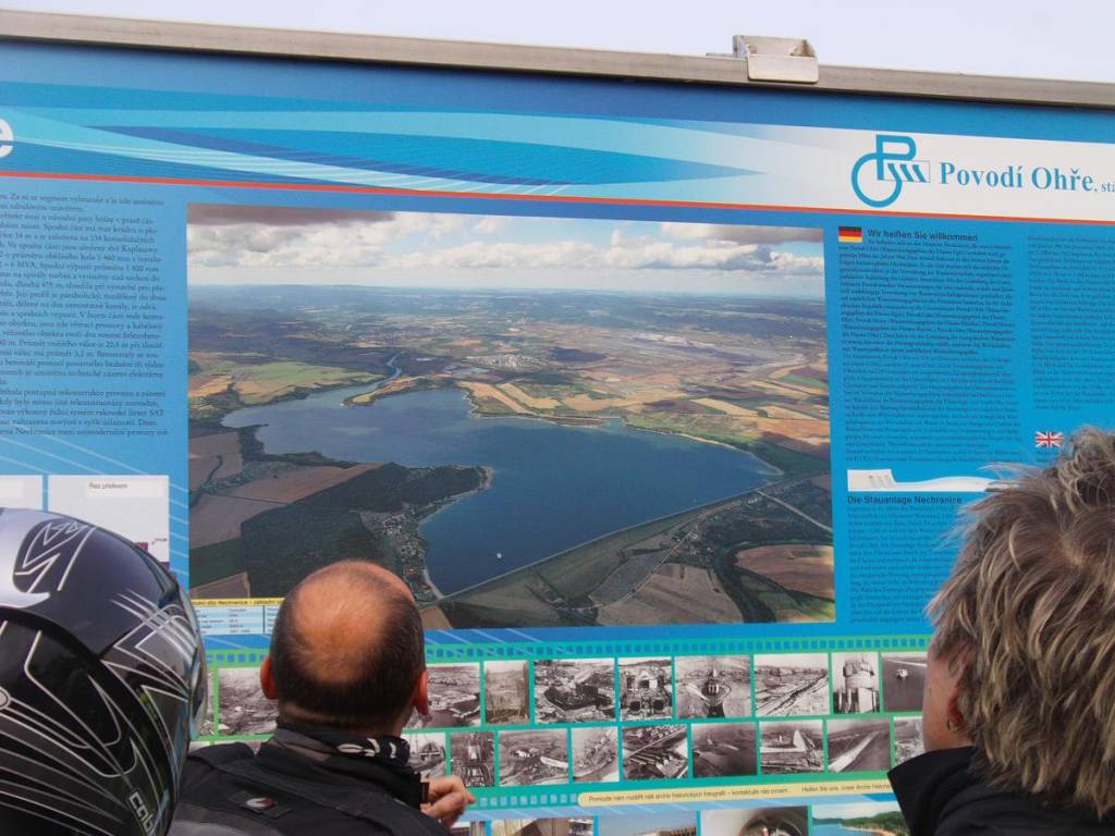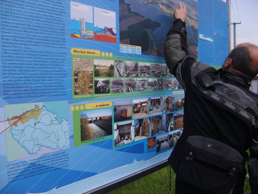 Nejdelší sypaná hráz (3280m) - vodní nádrž Nechranice byla naší další zastávkou s vydatným Bolkovým výkladem o elektrárenské činnosti a rybaření v okolí:-) Ale to už se k nám začaly valit mraky plné vody.
