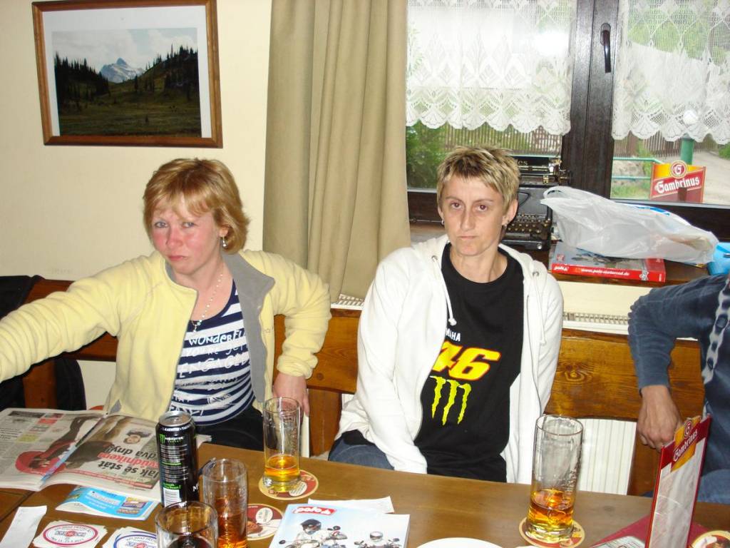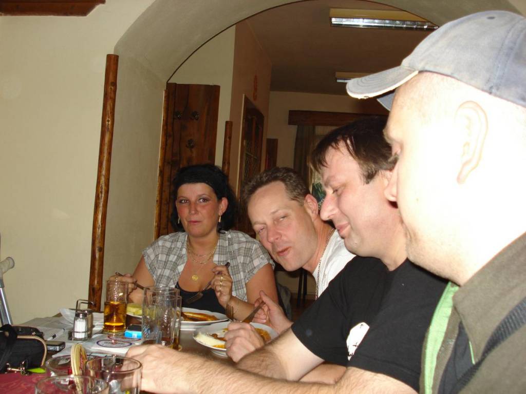 Přes Vejprty kolem vodní nádrže Přísečnice jsme jeli směrem na Chomutov, před kterým je pár opravdu pěkných zatáček u obce Celná. U obce Místo jsme se měli dle plánu podívat na hrad Hasištejn. Ovšem zrovna probíhali slavnosti, takže jsme se tam nedostali. Od Chomutova nás bolek vedl přes Horu Sv. Šebestiána, Rübenau, Flöha, Deutscheinsiedel na oběd k Hoře Sv. Kateřiny. Někteří na oběd dorazili trochu později neb semafory v poslední německé obci roztrhaly naší kolonu a poslední z ujíždějící kolony zřejmě opomněli na jedno z pravidel hromadných vyjížděk.