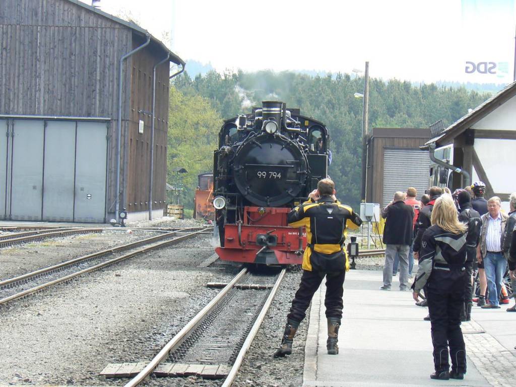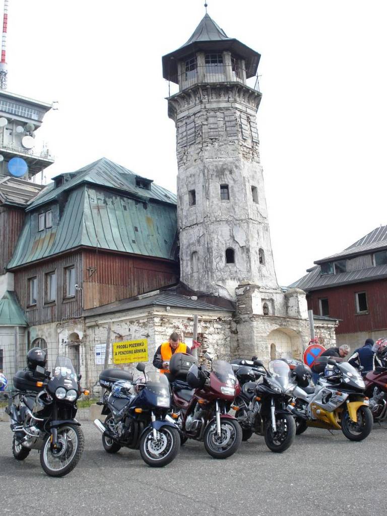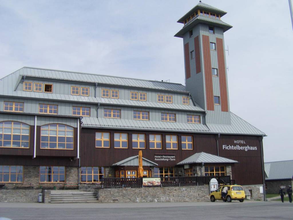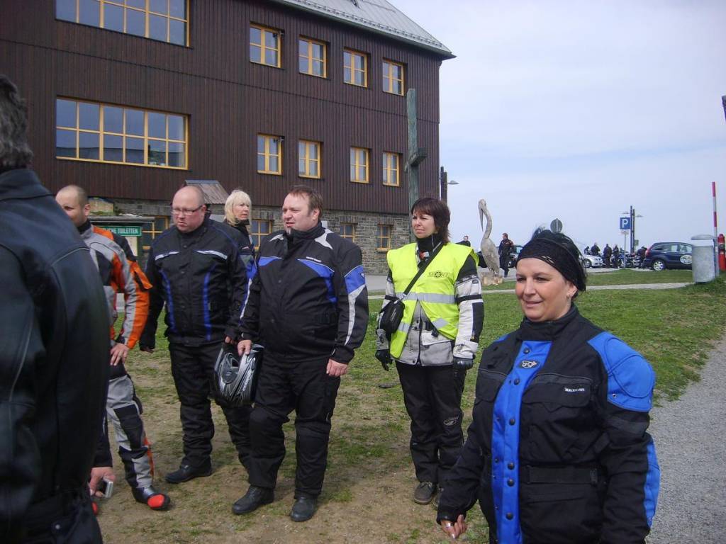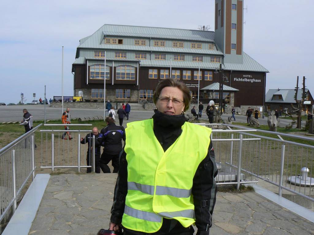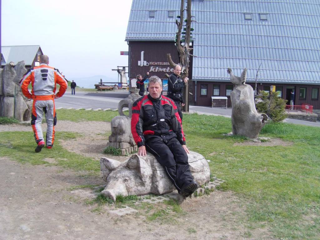 Vrchol Fichtelbergu(1214,6m)nejvyšší hora spolkové země Sasko je se svým fungujícím hotelem Fichtelberghaus v mnohem lepším stavu, který ještě osvěžují dřevěné sochy, které k některým motorkářům opravdu sedly:-)