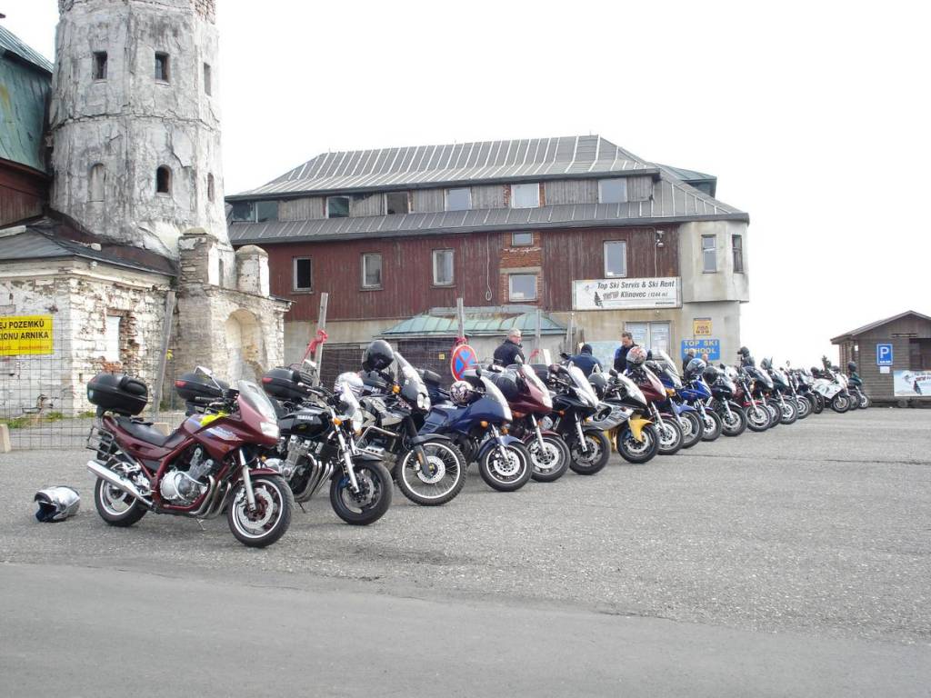 Hned naproti restauraci je vyhlídka, kterou někteří odvážlivci i pokořili a tak tu máme fotky motorek i z ptačí perspektivy.