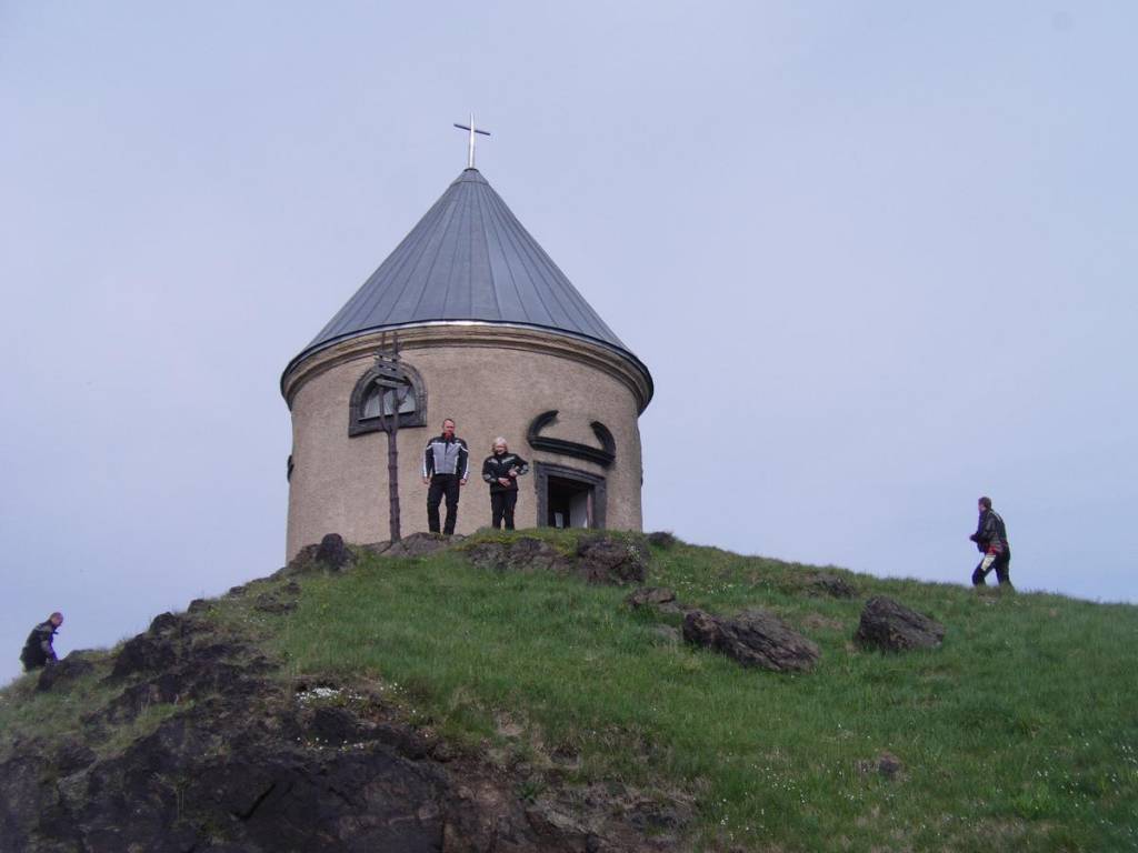 Další zastávka byla po enduro výjezdu na vrcholu Mědník u obce Měděnec, kde proběhla neplánovaná kultůrní vložka v podobě vystoupení místního zasloužilého umělce. Na vrcholu se nalézá kaple Neposkvrněného početí z roku 1674. Stavba má tvar rotundy a uvnitř je podle pověsti zakleta měděná panna hlídající ukryté poklady. Vysvobození je možné pouze jednou za sto let a komu se tento čin podaří, stane se prý vládcem Krušných hor.