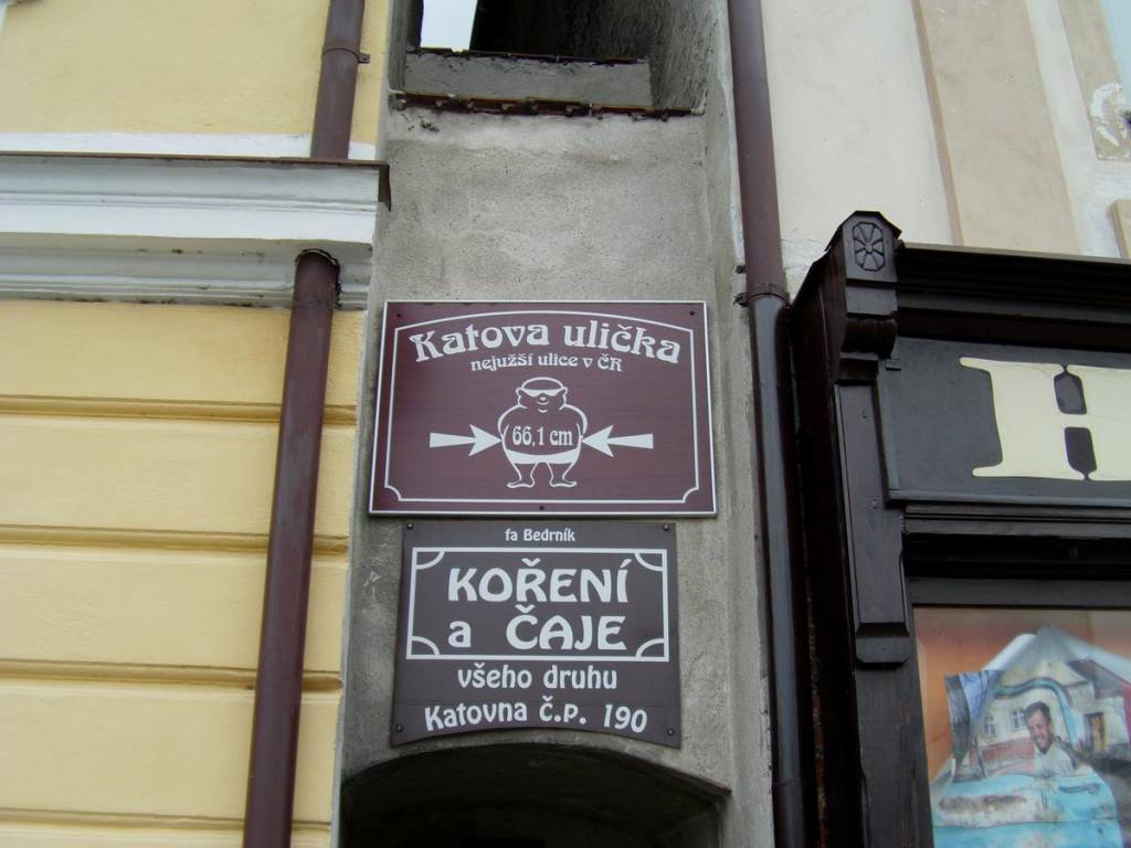 Ráno ještě někteří navštívili náměstí v Kadani s místní úzkou Katovou uličkou, kterou se dokonce i Bartus protáhl:-)