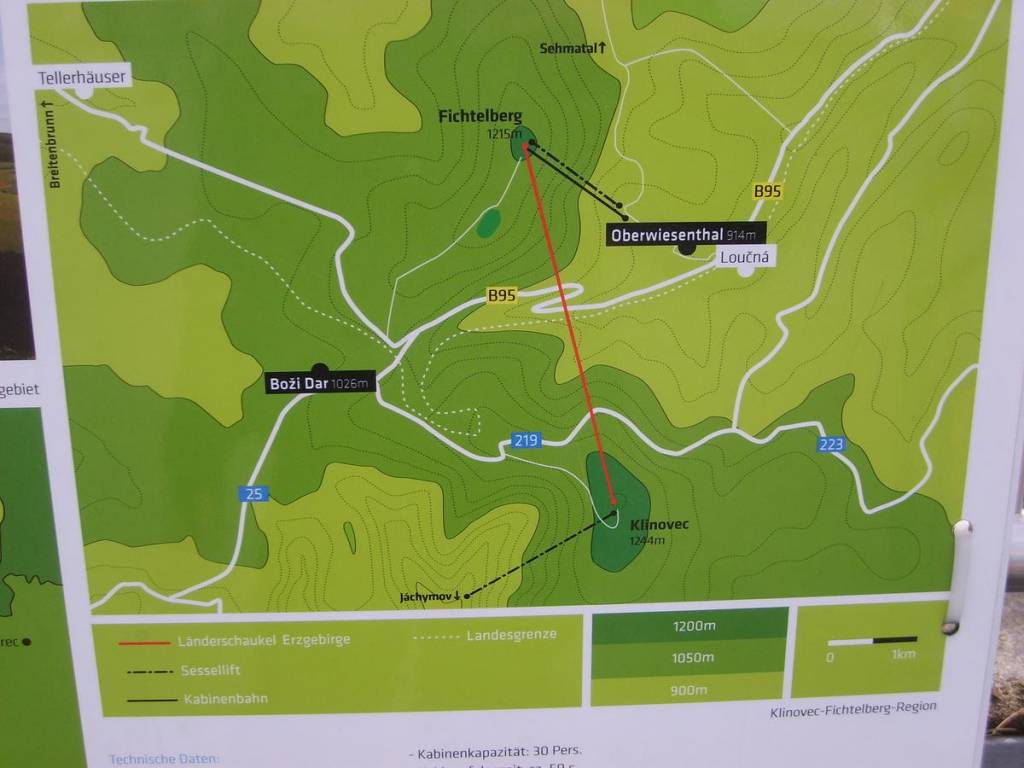Odtud jsme se přesunuli na dvojici vrcholků Klínovec a Fichtelberg, u kterých je propastný rozdíl ve stavu vrcholových budov. Český Klínovec hyzdí chátrající hostinec s osmibokou 24m vysokou kamennou rozhlednou.