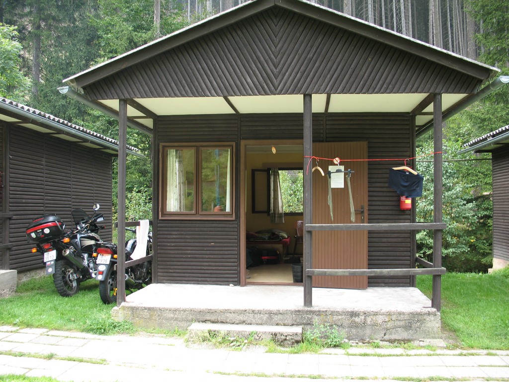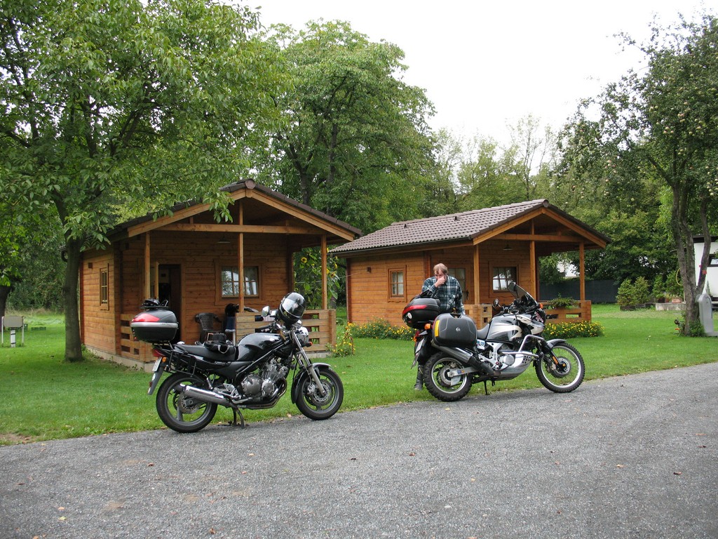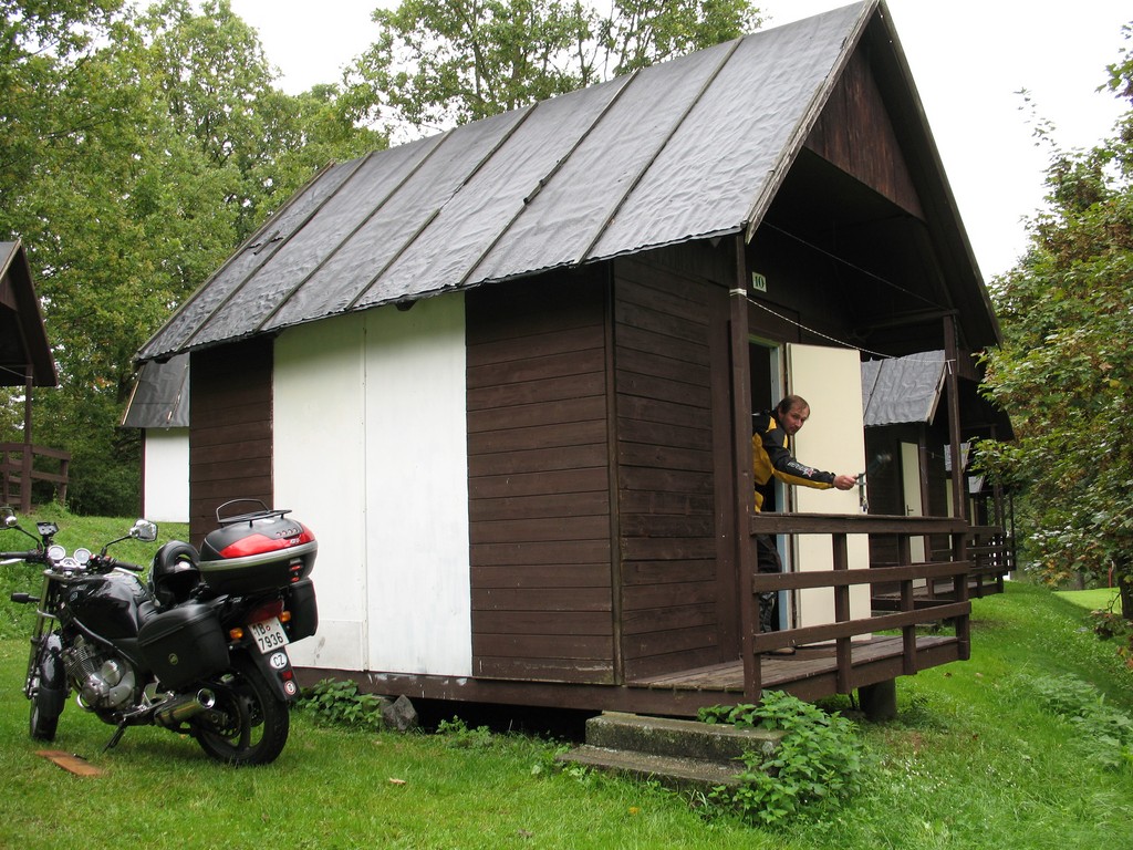 Budíček doprovázený klepáním dešťových kapek na střechu chatky nebyl příjemný. Venku zataženo, vypadalo to na celodenní déšť a už jsme přemýšleli, že se přesuneme rovnou za tu Plzeň. Naštěstí tam neměli volné místo a jak se později ukázalo, bylo to dobře.