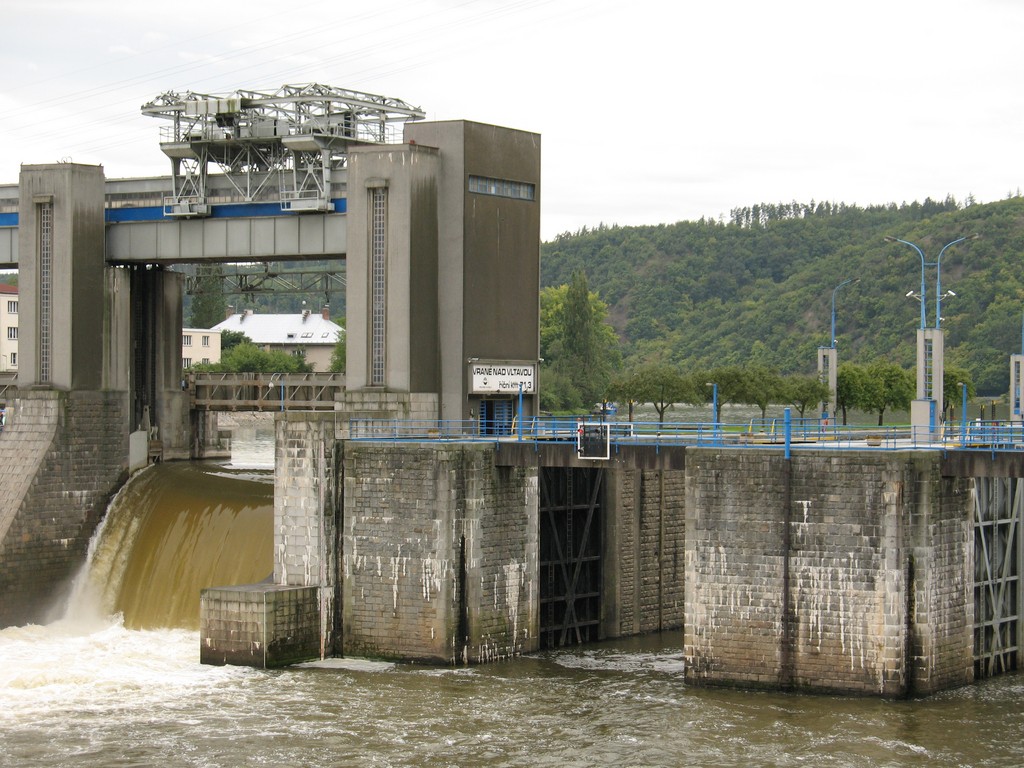 Bylo už docela dost hodin a nakonec jsme se po delším hledání v mapě rozhodli popojet asi 50km směr západ, do Vraného nad Vltavou. Byla to dobrá volba, kemp měl volné chatky a polohou se nacházel u poslední přehrady vltavské kaskády, která byla jedním z našich plánovaných cílů. Do kempu asi Češi a Moraváci nejezdí, protože zdejší personál na nás vyzkoušel všechny světové jazyky (teda kromě Haberštiny