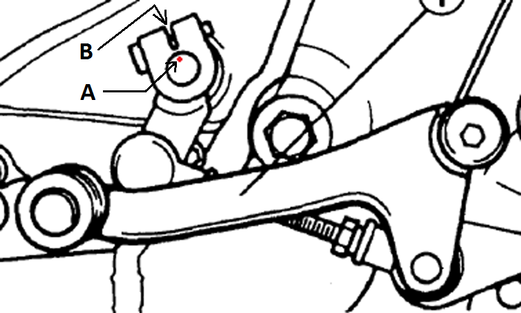 Simi: Jen takovej tip - dulezity je mit spravne natocenou radici paku na tom tisicihranu, co vede z motoru. Kdyz se podivas na celni stranu toho tisicihranu, je tam u kraje vyrazenej takove male dulek. Ten dulek (A) ma byt v urovni sterbiny (B) radici konzole, kterou na tisicihran nasouvas. Kdyz to je posunuty o nejakej zub jinam, spatne to radi.