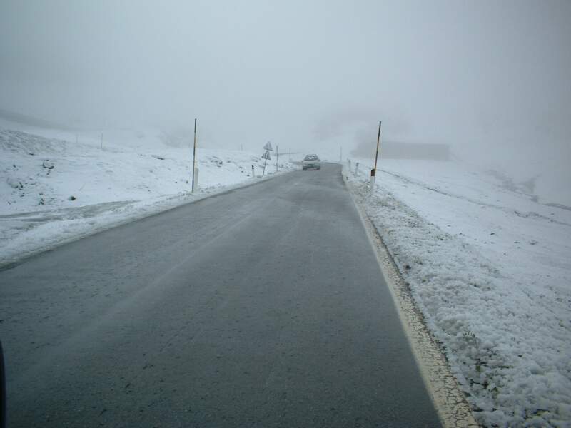 Ráno opouštíme ještě nedospalé bandiťáky a objíždíme Altersee za přejícího počasí. Projedeme několik údolí a po skvěle vyštěrkované cestě se vyhoupneme k nádhernému jezeru. Po chvíli vstřebávání jezerní atmosféry a štěbetání turistů-důchodců, pokračujeme k známé Grossglockner strasse. Před branami horské silnice ještě tankujeme s úmyslem na vrcholcích strávit hodně času, ale pohled na mraky zahalenou oblohu nevěští mnoho dobrého. Přesto odhodlaně vysolíme 17 euro za vjezd a jen doufáme, že nahoře bude přívětivější počasí. Několik prvních kilometrů je to opravdu paráda. Užíváme si pěkných 180tek a skvělého výhledu, což ovšem netrvá dlouho. Jak stoupáme, tak se viditelnost zkracuje, až není vidět ani na 10 metrů. Odbučujeme na Edelweiss spitze, kam vede již o poznání horší silnice z kočičích hlav. Nahoře vidíme jen plochu parkoviště a pak už jen bílo a bílo. To jsme ještě netušili, co nás čeká. Pár minut čekáme na nějakou díru v mracích, ale žádná nepřichází, a tak nám zbývá jen vzpomínat, co jsme to viděli na letácích a teď vidíme jen tu jednu vše halící bílou barvu. Příště už, za ty peníze, vyjedu nahoru jen podle předpovědi počasí. Mezitím mraky rapidně houstnou. My startujeme mašiny, sjíždíme dolů už jen podle svodidel, protože jen ty jsou vidět. Ještě se pokoušíme pokračovat k tunelu Hochtorr, ale po kilometru je rozhodnuto, jedeme zpět. Jakoby toho nebylo dost, začínají létat blesky a padat kbelíky vody, tak raději zastavujeme u převisu a čekáme až se to přežene. Já zůstávám v nepromokavé Corduře a zbytek výpravy se navléká do nepromoků, které zas po půl hodince svléká neb je zas hezky. Z Bruku se přesouváme přes Uttendorf a Mittersill do Wald im Pinzgau, kde stavíme v pěkném kempu(snad nejlepší za celou cestu). Po odstrojení mašin od přebytečné zátěže, vyrážíme vstříc Krimmelským vodopádům. U vstupu po nás chtějí 1 E, což je v porovnání se vstupem na Grossglockner zadarmo. Cesta vzhůru je lemována vyhlídkami na vodopád, takže než vystoupáme k hotelu, jsme dokonale mokří jak zvenčí tak zevnitř, ale určitě to stojí za to. Vracíme se zpět do kempu, a aby té vody nebylo málo, jdeme do sprchy za 1 E na 6 minut.