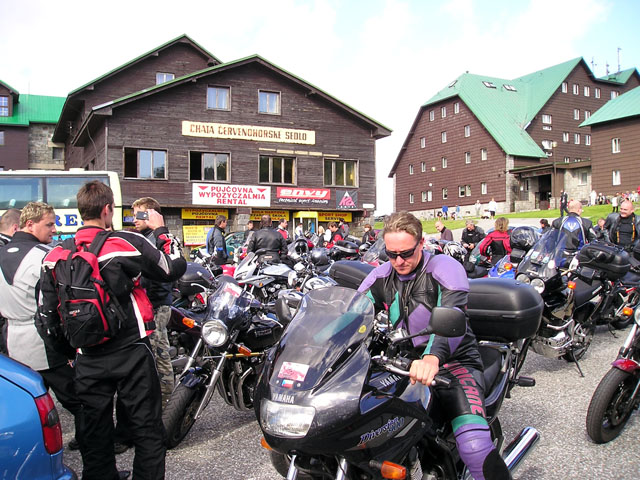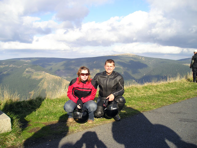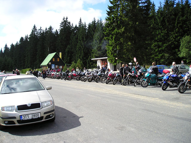 Cesta vedla přes "Buchláky severu" - sedlo Skřítek. Cestu nám zpestřili silničáři krásnýma správkama, kde bylo štěrku na metráky, takže si člověk připadal jak někde za Uralem. Na Skřítku obligátní kafe a jelo se dál.