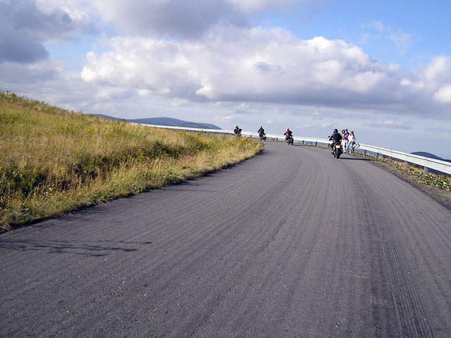 Další cesta vedla přes Červenohorské Sedlo, na které vede čím dál rozbitější silnice. Taky tady nás silničáři obšťastňovali plnými hrstmi štěrku - nejlépe v zatáčkách.