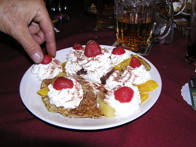 Kvůli plné obsazenosti hospůdky kempu a neochotě (nebo neschopnosti pingla otevřít vedlejší místnost) proběhl v pátek nájezd do města a vypití a vyjezení jedné z restaurací. Souboj v množství snězeného jídla tentokrát Drobeček prohrál