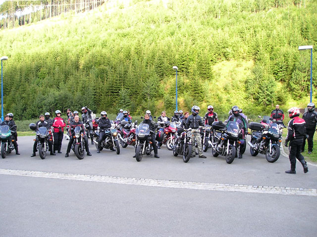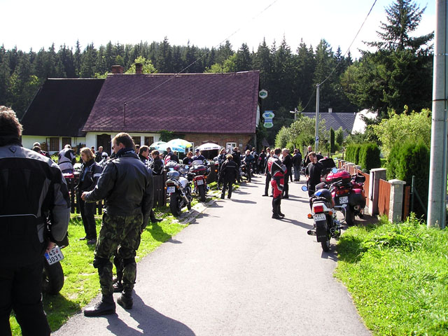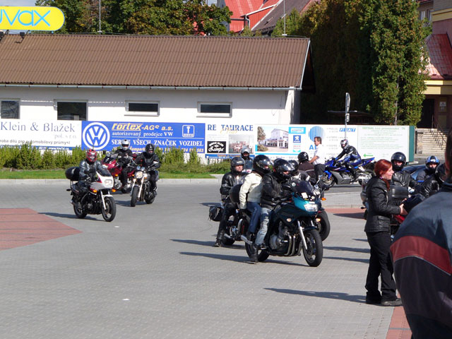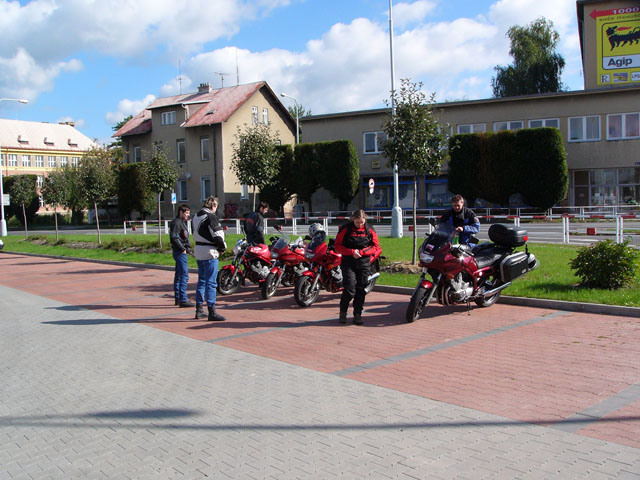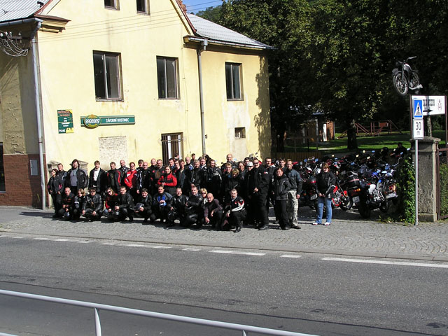 Jako tradičně byla hlavním bodem programu sobotní vyjížďka. Díky hezkému počasí se tentokrát natáhla na úctyhodných 260 kilometrů. Sraz byl ráno v deset v Šumperku u Lídlu. Něco po půl jedenácté už jsme byli všichni a mohlo se vyjet.