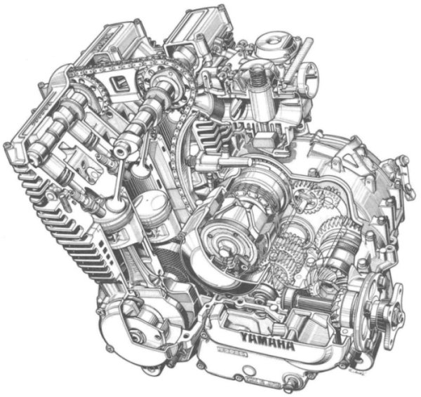 Hlava válců představovala nové pojetí způsobu plnění. Tato koncepce byla označována jako YICS - Yamaha induction control system. Podstata spočívala v tom, že krom sacích kanálů pro jednotlivé válce existoval v hlavě ještě jeden kanál, procházející kolem všech válců. Každý válec je tak napájen ze dvou směrů. Docházelo tak k lepšímu víření směsi. Směs byla tak homogennější a docházelo k lepšímu spalování. Dle Yamahy klesla spotřeba paliva asi o 10%.
