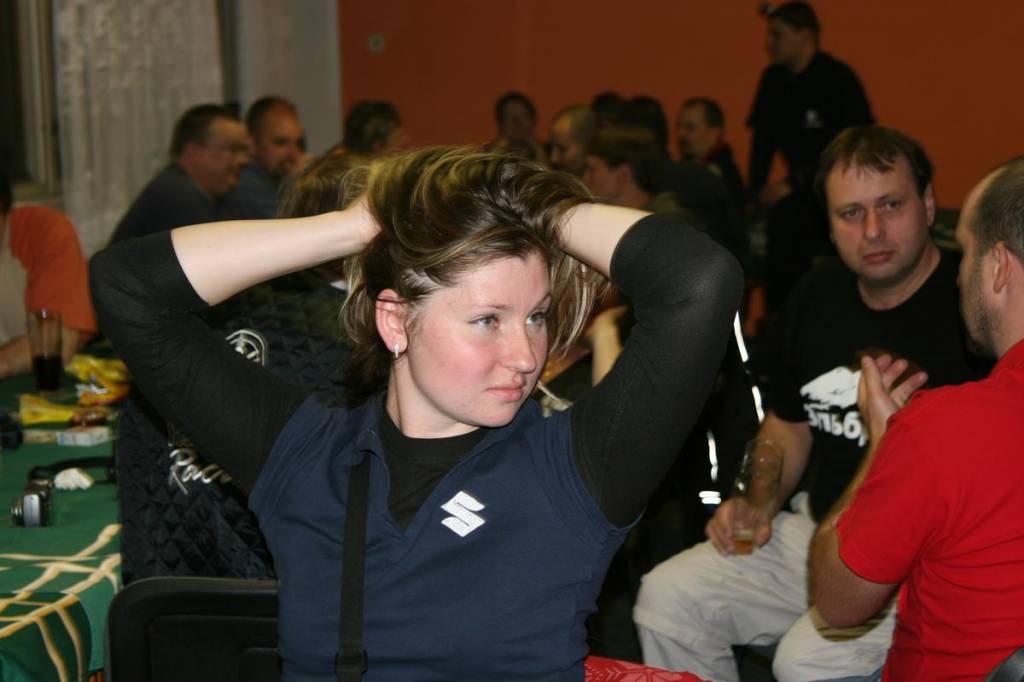 Bohužel krásné hřebeny Jeseníků asi přitahovaly deštivé počasí, takže sobotní vyjížďka byla zkrácena "jen" na návštěvu Zlatorudných mlýnů, veteranmuzea, oběd a nahlednutí do hospůdky s dřevěnými hlavami štamgastů. Ovšem při takto krátké vyjíždce leckomu zbylo mnoho sil na večer, takže Habera dostal za své narozeniny pořádného hobla. Proběhlo i losování tomboly s neočekávanou hlavní cenou, kterou nebylo nic jiného, než jmenování organizátora dalšího XJ srazu. Dále byl vyhlášen nejvzdálenější účastník srazu, kterým se stal shodou okolností vítěz tomboly. Takže pokud zbyde Hrochovi dostatek elánu na organizaci, tak se může moravská sekce těšit na pěkně dlouhou cestu na jarní sraz do Krušných hor.
