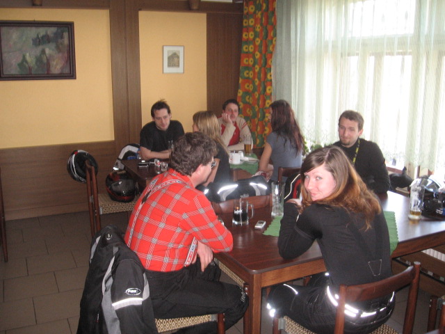Zastavili jsme za Opavou ve známém motorestu Kukačka a totálně zblbli obsluhu. Holčina nám nejdřív odmítla otevřít salónek, že je jen na objednávku, ale po přesvědčení že je nás hodně a máme obrovský hlad a sníme vše nakonec podlehla